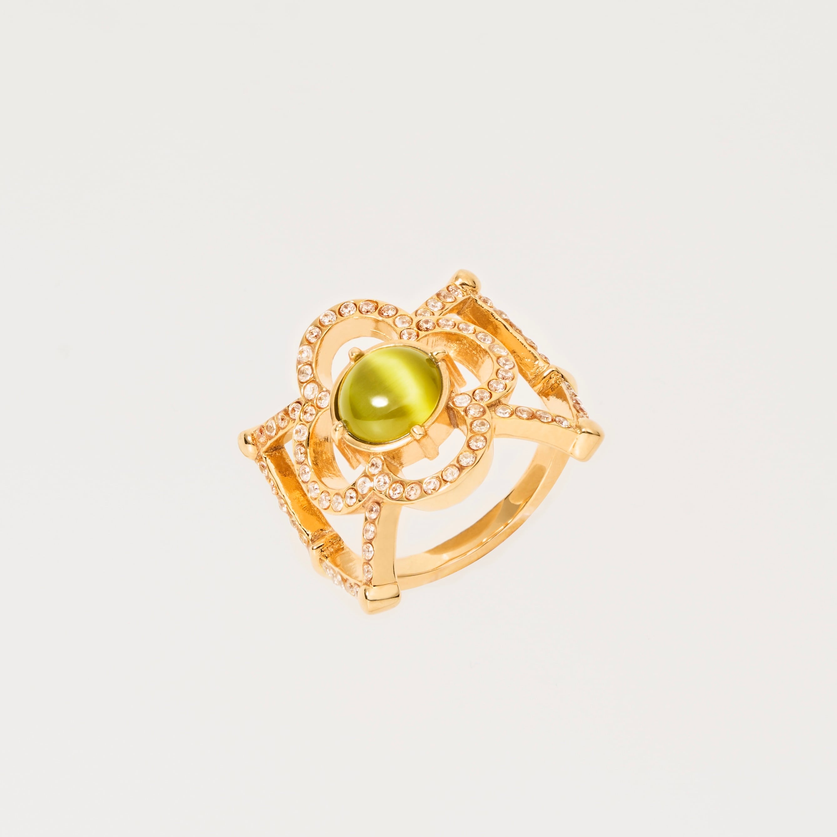 silver925/K18イエローゴールドコーティング/CZ/ガラス(キャッツアイオリーブ)